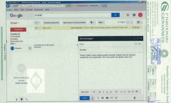 E quando a mensagem não vai a lugar nenhum, pois permanece no rascunho do correio eletrônico, ainda é possível descobrir com mandados de busca e apreensão, segundo Cerdeira. Além disso, o Google também tem as informações salvas no rascunho do e-mail.