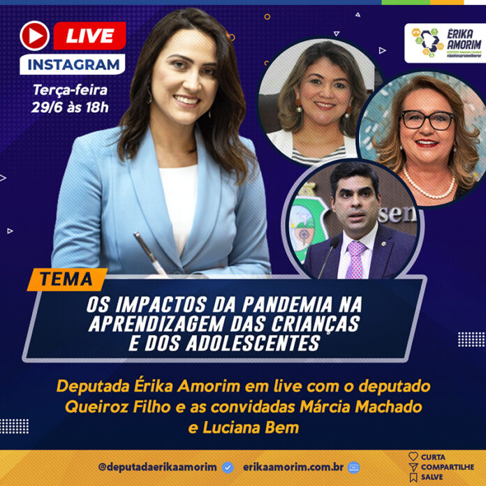 Duas especialistas foram convidadas para o bate-papo. São elas: Luciana Bem, presidente da Associação Brasileira de Psicopedagogia – Seção Ceará, e Marcia Machado, cientista chefe na Área de Infância e Juventude da Fundação Cearense de Apoio ao Desenvolvimento Científico e Tecnológico. Ambas responderão dúvidas dos deputados e, também, dos ouvintes da transmissão ao vivo. A live ficará disponível no IGTV da deputada Érika Amorim.
