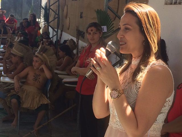 A secretária municipal de Governo e Articulação Política, primeira-dama Erika Amorim, participou nesta sexta-feira (25/8) da solenidade de conclusão do Programa Educacional de Resistência às Drogas e à Violência (Proerd). A cerimônia aconteceu na Escola Indígena Anamá Tapeba, no Capuan, e foi marcada pela entrega de certificados a 22 jovens indígenas.