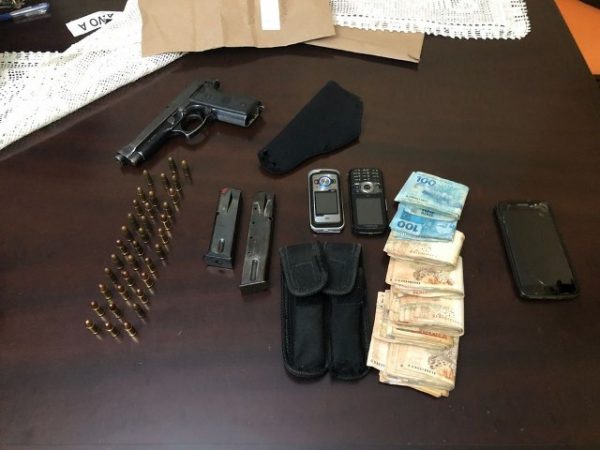 Eles recolheram também dólares, munição e uma pistola nove milímetros com numeração raspada. Um revólver foi encontrado no gabinete do prefeito.