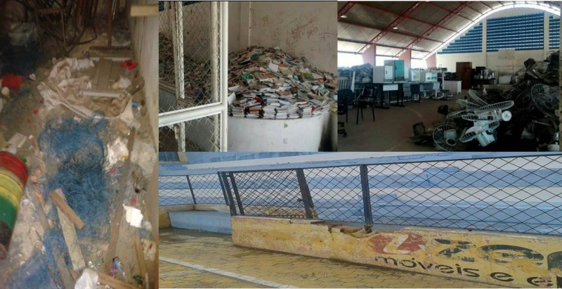 2) A quadra da escola Carlota Távola, vários objetos estão alojados na quadra poliesportiva a um bom tem e pelo que se vê por tempo indeterminado. Com isso os jovens ficam ociosos, pois não tem outro local para prática de esporte. Era utilizado pelas escolinhas de esportes e sediava vários eventos esportivos, hoje se encontra como deposito de matérias e objetos.