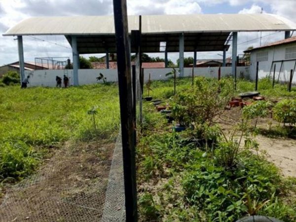 O terreno tem uma horta e trabalha com o reúso de água que consiste no reaproveitamento de determinada água que foi insumo ao desenvolvimento de uma atividade humana