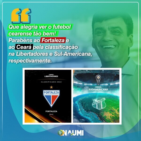 O empresário Naumi Amorim, parabenizou os clubes do Fortaleza e do Ceará pelo acesso à Libertadores e Sul-Americana, respectivamente. O ex-prefeito de Caucaia foi o responsável por reativar o Caucaia Esporte Clube durante a sua gestão, que logo se tornou campeão da série B do Campeonato Cearense de Futebol e da Taça Fares Lopes, ambos em 2019.