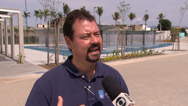 Eduardo Paes e ex-secretário de obras Alexandro Pinto (de camisa amarela) durante evento na gestão do então prefeito (Foto: Reprodução / TV Globo)