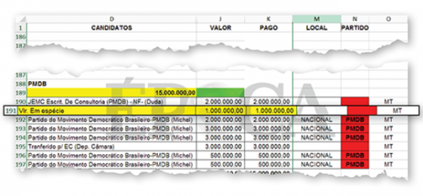 Florisvaldo transportava R$ 1 milhão que haviam feito um caminho tortuoso. Sua origem era o BNDES, o Banco Nacional de Desenvolvimento Econômico e Social. Os aportes do BNDES na JBS proporcionados pelo governo petista custavam um pedágio de 4%, num acerto feito anos antes por Joesley Batista com o então ministro da Fazenda, Guido Mantega. O dinheiro foi estocado em duas contas nos Estados Unidos, cujo saldo superou os US$ 150 milhões. Na campanha de 2014, a mando de Mantega, começou a ser distribuído. Para Temer, especificamente, foram destinados R$ 15 milhões – ele ficou com parte em dinheiro vivo, como narrado nesta reportagem, e repassou valores para correligionários.