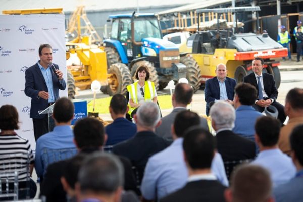 O início das obras de expansão do Aeroporto Internacional Pinto Martins (Fortaleza Airport) foi realizado nesta terça-feira (19), em solenidade realizada no entorno das construções do terminal. O lançamento da Pedra Fundamental, que marca a abertura das intervenções, teve a participação do governador Camilo Santana, da presidente da Fraport, Andreea Pal, do prefeito de Fortaleza, Roberto Cláudio, e de executivos do consórcio construtor Método e Passareli.