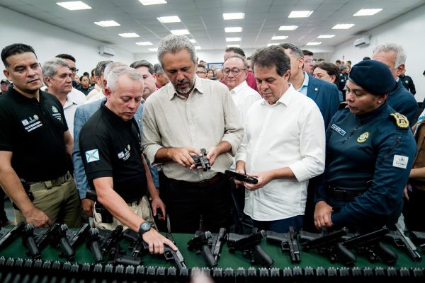 A entrega do armamento foi realizada pelo prefeito Evandro Leitão e pelo governador Elmano de Freitas.