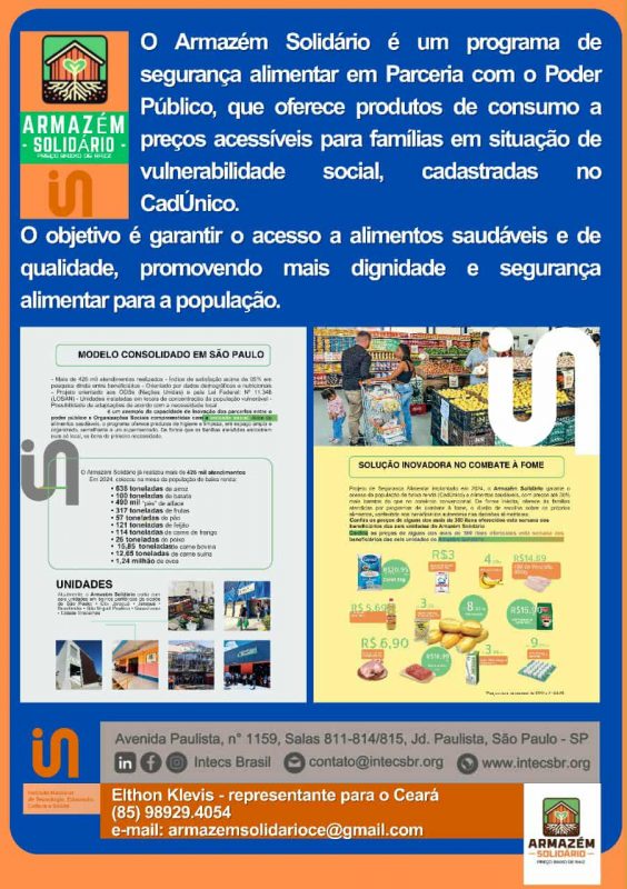Inspirado no modelo já implantado com sucesso pela Prefeitura de São Paulo, em parceria com o Instituto Intec, o Armazém Solidário paulistano já conta com sete unidades em funcionamento.