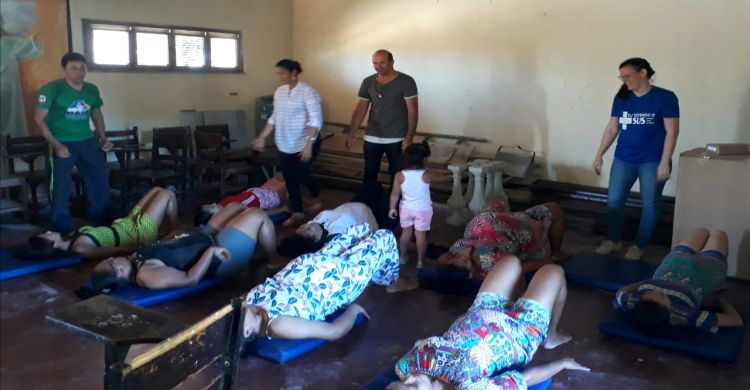A Secretaria Municipal de Saúde (SMS) ofereceu nesta quinta-feira (19/7) um serviço especial às gestantes do Distrito 5 de Caucaia. O grupo recebeu orientações sobre a importância da prática de atividades físicas e participou de um aulão de pilates.