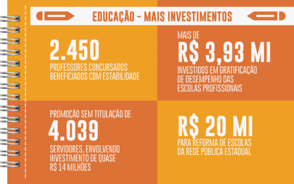 Outro ponto de investimento anunciado pelo Governo do Ceará foi a publicação e o pagamento da Gratificação de Desempenho das Escolas Profissionais 2016, além do encaminhamento do Projeto de Lei que cria o Prêmio Foco na Aprendizagem. A premiação será voltada aos professores de escolas que mais se destacam dentro da rede pública estadual.