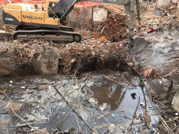 Água é encontrada no subsolo do prédio que desabou durante a retirada dos escombros (Foto: Divulgação/Corpo de Bombeiros)