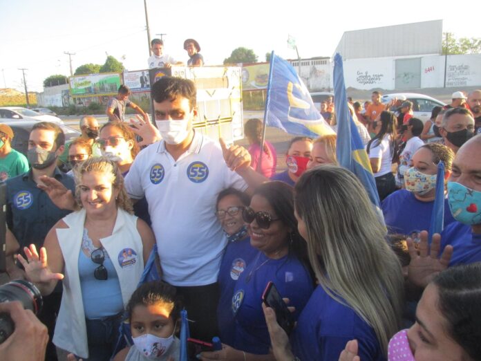 Naumi 55 lidera a coligação “Caucaia Seguindo em Frente”, que também conta com os partidos PSL, PDT, PTB, Democracia Cristã, Avante, Solidariedade e Democratas.