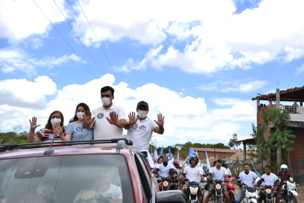 O candidato à reeleição Naumi 55 (PSD) liderou uma grande caravana por nove localidades do sertão caucaiense neste domingo (1º/11). Acompanhado do candidato a vice Eneas Goes (PSL) e da deputada estadual Érika Amorim, o atual prefeito do município foi recebido com entusiasmo no Campo Grande II, Minguaú, Caraussanga, Tucunduba, Poço Verde, Feijão, Várzea do Meio, Brasília e Bom Princípio.