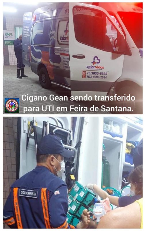 Gratidão define! Após cinco dias internado na Upa de Cruz das Almas, o cigano Gean Almeida desde (domingo/08/02) se encontra numa UTI do Hospital Geral Clériston Andrade de Feira de Santana/BA.