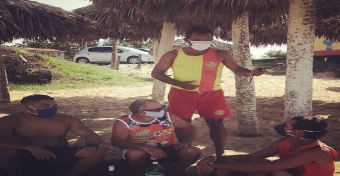Os guarda-vidas de Caucaia continuam a realizar ações de orientação aos banhistas que insistem em frequentar o litoral do município para o cumprimento das medidas de prevenção e combate ao coronavírus (Covid-19) por meio do isolamento social.