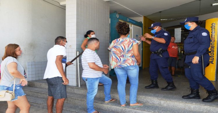 Equipes da Guarda Municipal de Caucaia (GM) estão nas ruas do município orientando e conscientizando a população sobre os cuidados e medidas que devem ser tomadas no combate ao novo coronavírus (Covid-19). A fiscalização que aconteceu na manhã desta quarta-feira (08/04) ocorreu em sete agências bancárias, nos comércios e no Mercado Municipal Juaci Sampaio Pontes, no centro da cidade.