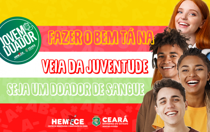 A partir da próxima segunda-feira (26), o Centro de Hematologia e Hemoterapia do Ceará (Hemoce), equipamento da Secretaria da Saúde do Estado (Sesa), inicia campanha de incentivo à doação de sangue. Com o slogan “Fazer o Bem Tá na Veia da Juventude”, a iniciativa visa ampliar o número de doações de sangue entre o público jovem. A ação será realizada até o dia 31 de maio pelas unidades do Hemoce em Fortaleza e nas cidades de Crato, Iguatu, Juazeiro do Norte, Sobral e Quixadá.