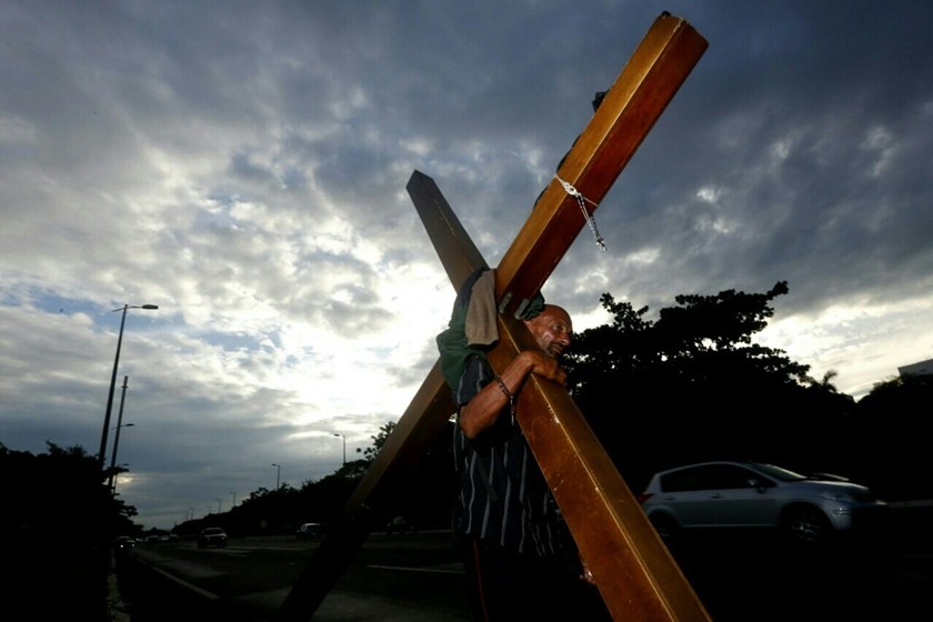 Paulo Cícero de Lima, 55 anos, caminha há 29 dias com uma cruz de 40 quilos sob as costas. A reportagem do Correio Braziliense conta que o motivo do protesto é que Paulo passou 16 anos preso por um crime que, segundo ele, não cometeu.