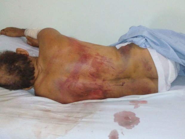 O idoso agredido, que não teve identidade divulgada, foi internado com ferimentos graves no Hospital Municipal de Quijingue e, segundo a polícia, está aguardando transferência para uma unidade de saúde de Feira de Santana, a 100 quilômetros de Salvador. Conforme a delegacia, ele sofreu várias escoriações pelo corpo e está com suspeita de fratura na costela e no braço. O estado de saúde não foi informado.