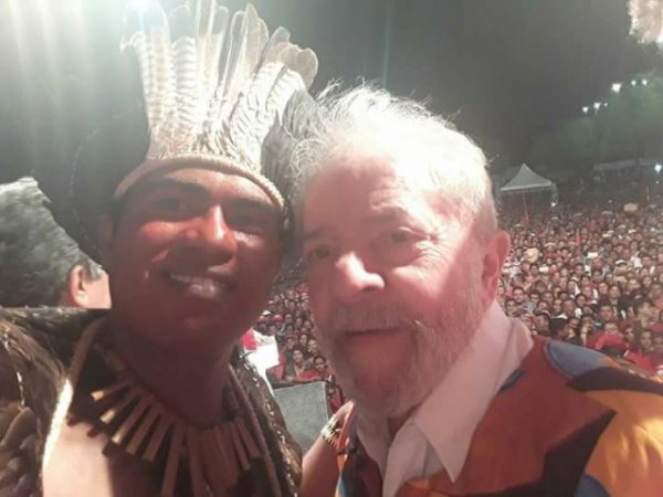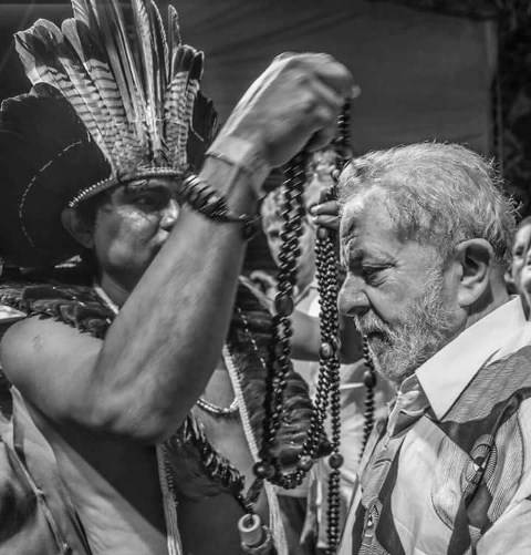O líder Indígena entregou suas guias de proteção, onde colocou no pescoço do Lula, “A guia serve como proteção” disse Weibe.