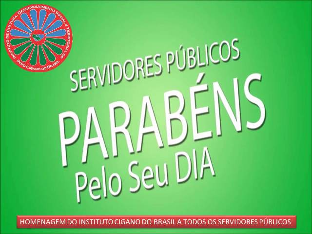 O Instituto Cigano do Brasil-ICB, parabeniza e cumprimenta a todos os servidores públicos, do estado, dos municípios e do governo federal, pelo desempenho, pelo trabalho, dedicação e compromisso com o que eles fazem. O crescimento de uma cidade não é fruto de uma pessoa só. É a soma de um conjunto de forças que se unem para promover o desenvolvimento e o bem comum. E você servidor público é sem dúvida peça importante nesse contexto. Agradecemos a todos aqueles que, na condição de servidor público, tem colaborado do gari ao mais alto graduado, todos têm a mesma importância..