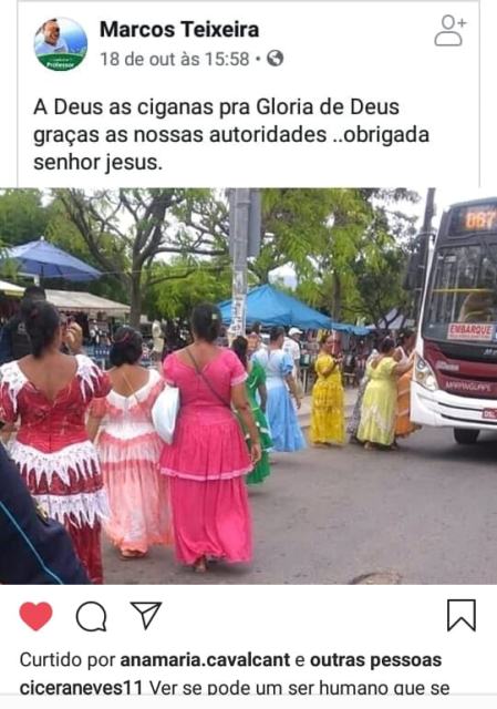 Vêm, por meio deste documento, considerando ter sido verificada postagens preconceituosas em redes sociais (Facebook/imagem), “A Deus as ciganas pra Gloria de Deus graças aas nossas autoridades .. obrigada senhor jesus”, devido a postagem aconteceu  comentários jocosos e criminosos relacionados as  Ciganas  da foto e o Povo Cigano. O sujeito que escreveu esse texto usou o estereotipo para atacar o Povo Cigano.