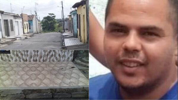 Calçada da casa amarela, onde Robson da Silva, 35 anos foi morto.