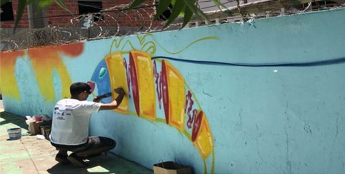 Convidado pelo artista Júnior Zapata, Jessé Martins há sete anos faz parte de um grupo de grafiteiros de Caucaia. “É uma ótima oportunidade de a gente mostrar nosso trabalho. Aqui estou desenvolvendo uma paisagem que retrata a comunidade dos pescadores do Cumbuco”, revelou.