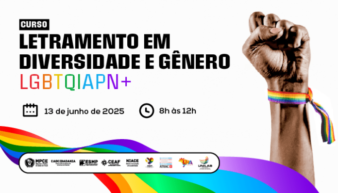 O Ministério Público do Ceará realizará na próxima sexta-feira (13/06), das 8h às 12h, o curso “Letramento em Diversidade e Gênero – LGBTQIAPN+”. A capacitação ocorrerá no auditório da Escola Superior do Ministério Público (ESMP), em Fortaleza, sendo transmitida para as sedes regionais da ESMP em Juazeiro do Norte e Sobral. O momento é voltado para membros, servidores, estagiários e residentes do MP, além de gestores municipais e estaduais e integrantes do Sistema de Justiça e de instituições com enfoque na inclusão e na diversidade. A iniciativa é uma realização do Centro de Apoio Operacional de Defesa da Cidadania (Caocidadania), do Centro de Estudos e Aperfeiçoamento Funcional (Ceaf) e da Associação Mães do Orgulho e Resistência Ceará (ONG AMOR). As inscrições devem ser feitas na plataforma de curso do Ceaf/ESMP.