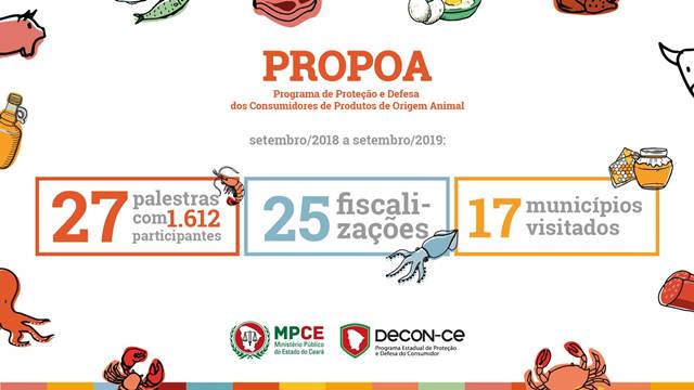 O Ministério Público do Ceará (MPCE), através do Programa Estadual de Defesa do Consumidor (Decon), celebrou, na última quarta-feira (04/09), um ano desde a criação do Programa de Proteção e Defesa dos Consumidores de Produtos de Origem Animal (Propoa). Entre os resultados, destaca-se a visita a 17 municípios cearenses e a realização de 27 palestras na Capital e no interior do estado, com a participação de 1.612 pessoas. Além disso, o Propoa também orientou, em diversos municípios, sobre a importância da implementação do Selo de Inspeção Municipal (SIM), que atesta a segurança e respalda a qualidade do produto.