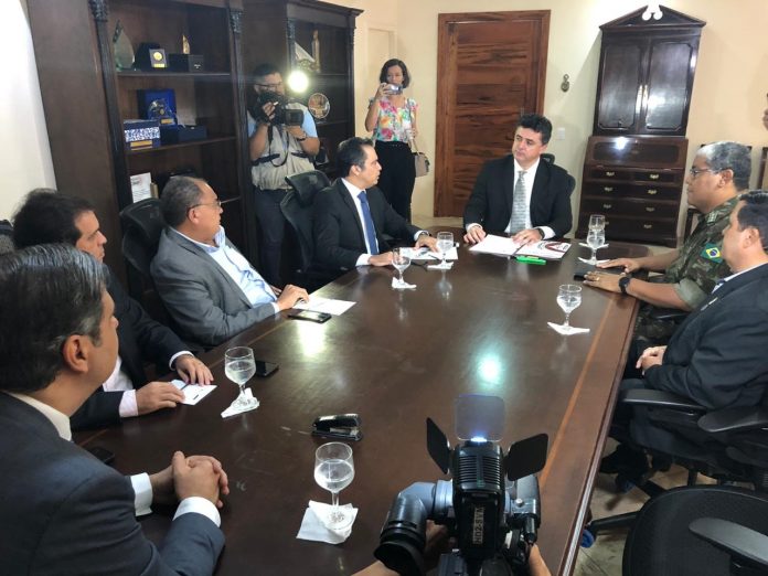 A Procuradoria Geral de Justiça foi sede da primeira reunião da Comissão dos poderes Executivo, Legislativo e Judiciário que irá tratar das soluções para a crise gerada pela paralisação de parte dos militares estaduais, iniciada na última terça-feira (18/02). O encontro ocorreu na manhã desta quarta-feira (26/02) no plenário dos Órgãos Colegiados. Além do Procurador-Geral de Justiça, Manuel Pinheiro, também participaram os membros da Comissão, Desembargador Teodoro Silva Santos, representante do Poder Judiciário; o Procurador-Geral do Estado Juvêncio Viana, representante do Poder Executivo; deputado estadual Evandro Leitão, representante do Poder Legislativo; e, como observadores, o Presidente da OAB, Erinaldo Dantas e os representantes do Exército Brasileiro, coronéis Marcos Cesário e Menezes Neto.