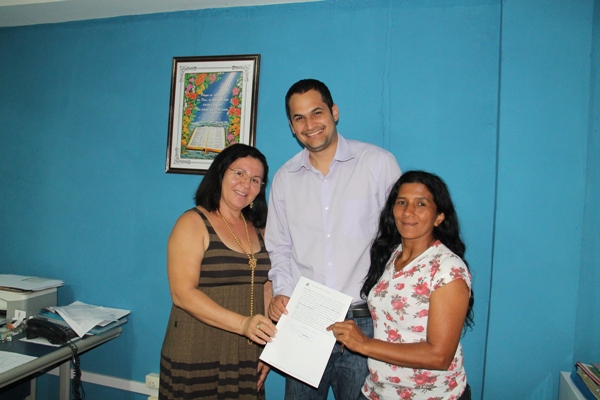 A coordenadora geral estadual do Movimento dos Trabalhadores Sem teto de Roraima, Maria Ferraz e o assessor jurídico, Marcio Patrick estiveram com a empresaria, Francinete Amaro, para assinar o termo de compromisso.