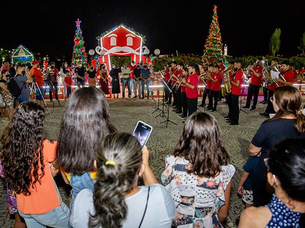O prefeito de Várzea Alegre, Zé Helder (MDB) acompanhado da primeira-dama Sônia Fortaleza, do vice-prefeito Dr. Fabrício Rolim, da secretária de Cultura e Turismo Toinha Pereira, de vereadores, demais secretários e assessores do Governo Municipal, visitaram na noite desta segunda-feira, 13 de dezembro, a decoração natalina do Parque Cívico São Raimundo Nonato, na XV edição do Natal da Paz.