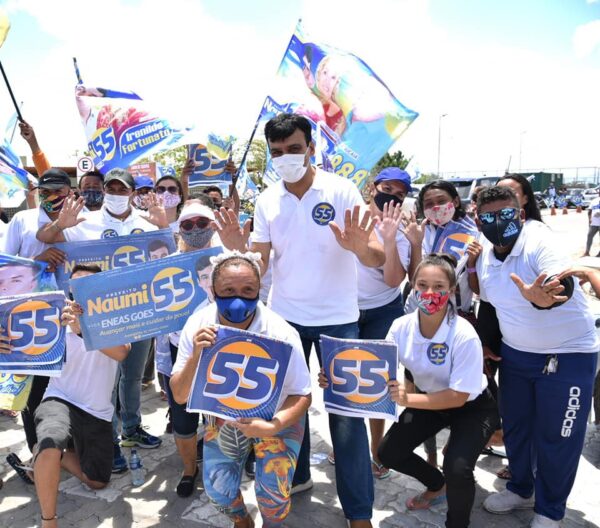 Naumi 55 lidera a coligação “Caucaia Seguindo em Frente”, que também conta com os partidos PSL, PDT, PTB, Democracia Cristã, Avante, Solidariedade e Democratas.