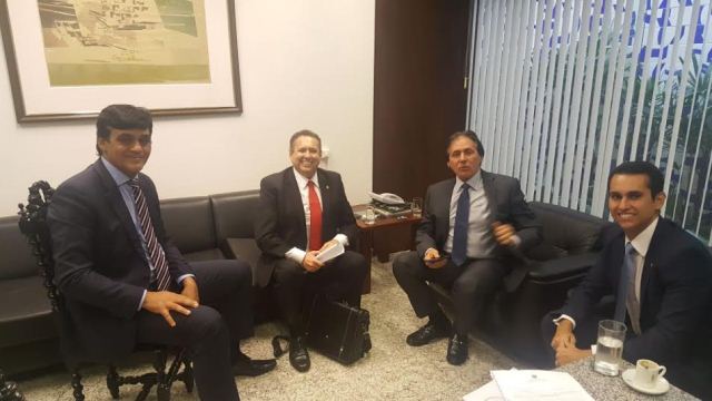 O prefeito de Caucaia Naumi Amorim (PMB) cumpriu agenda em Brasília nesta terça-feira (6/3). Acompanhado do secretário municipal de Saúde, Moacir Soares, ele discutiu temas importantes para Caucaia com o presidente do Congresso Nacional, senador Eunício Oliveira, o deputado federal Domingos Neto e o ex-presidente do Tribunal de Contas dos Municípios do Ceará (TCM), Domingos Filho.