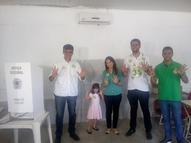 O candidato a prefeito de Caucaia, Naumi Amorim (PMN), votou por voltas das 9h 30mim, na sessão nº 296 localizada na escola Danilo Dalmo da Rocha Correia, no bairro Potira II. O candidato estava acompanhado da esposa, Erika Amorim e seus filhos.