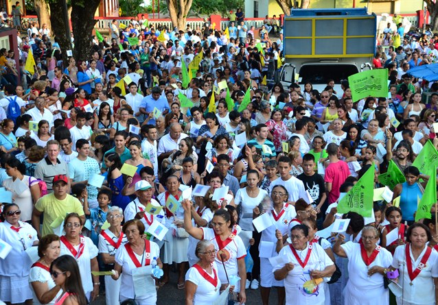 DSC_0214A 27ª Romaria de Nossa Senhora Aparecida, foi marcada por um misto de fé, longa caminhada e agradecimentos, os devotos se concentraram nas proximidades da Igreja Nossa Senhora do Carmo, próximo à Orla Taumanan, no Centro, e seguiu até a Igreja Nossa Senhora de Aparecida, no bairro Aparecida, na zona Norte da cidade.