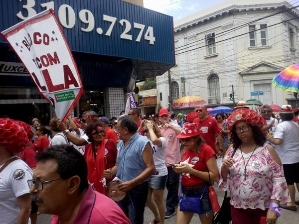 Militantes e simpatizantes do PT do Ceará lançaram neste sábado (13/01), em Fortaleza, o bloco “Tô com Lula”, parte de atividades em defesa do ex-presidente Luiz Inácio Lula da Silva (PT). O bloco, de Pré-Carnaval, saiu da Praça da Igreja do Carmo (Centro), e percorreu várias ruas da cidade, entoando músicas em defesa de Lula.