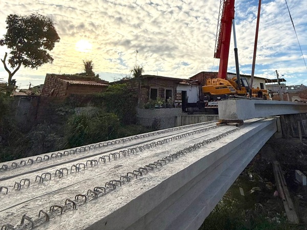 Na atual fase, está sendo concluída a execução das vigas longarinas, etapa fundamental para a posterior construção da laje de consolidação. A pavimentação em piso intertravado também está em ritmo acelerado, com cerca de 95% de conclusão, enquanto os serviços de drenagem já foram finalizados.