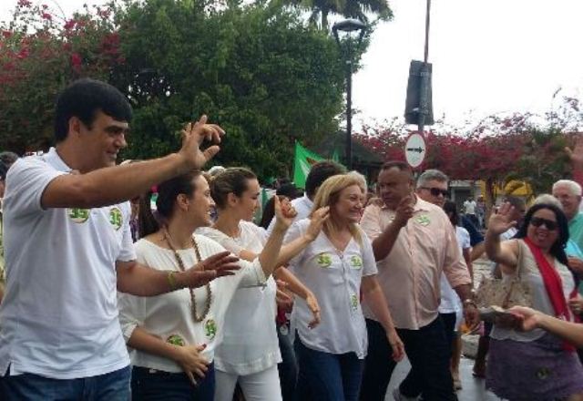 Uma multidão de homens, mulheres, jovens, crianças, idosos e militantes vestindo verde, com bandeiras, muita alegria e descontração prestigiando e apoiando Naumi Amorim 35 e Lívia Arruda.