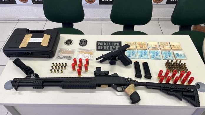 Ainda no decorrer das diligências para cumprimento dos mandados judiciais, as equipes de policiais civis realizaram a apreensão de duas armas de fogo – sendo uma pistola calibre .40 e uma escopeta calibre 12.