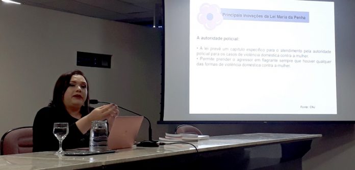 A Escola Superior da Magistratura do Ceará (Esmec) realizou, nesta sexta-feira (28/09), a palestra “Os 12 Anos da Lei Maria da Penha: reflexões sobre a teoria e a prática”, ministrada pela juíza Teresa Germana Lopes de Azevedo. Ela é auxiliar do Juizado de Violência Doméstica e Família contra a Mulher da Comarca de Fortaleza.