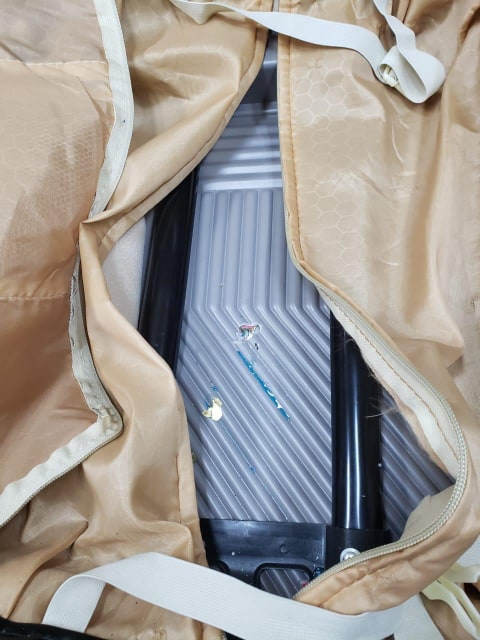 Em um fundo falso da mala, os policiais encontraram a substância que indicou se tratar de cocaína quando submetida a teste.