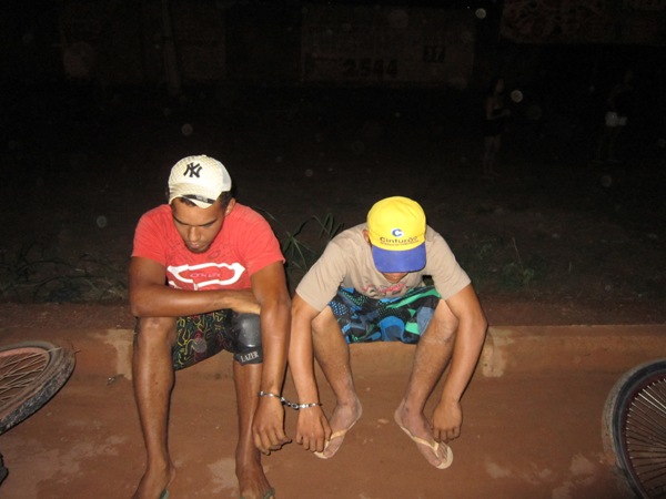 Era por volta das 21h, da noite deste sábado (27/04), quando a menor nome fictício (Andréia), foi até uma pizzaria no bairro Cauamé comprou uma pizza para levar para sua casa, ao retornar nas proximidades da sua residência no bairro aeroporto, foi abordado por um elemento numa bicicleta, que tomou a quantia de R$ 20,00 (vinte reais), em seguida, o assaltante em desabalada carreira se evadiu do local em direção a BR 174. No lugar certo, na hora certa, A menor em estado de choque avisou seu namorado Altermir Paiva que chamou seu vizinho o PM da cavalaria Sd. Wellington, que prontamente atendeu e seguiram na captura do assaltante, em questão de minutos deterão o assaltante que se encontrava em companhia de seu comparsa, o Sd.Wellington com uma arma em punho deu voz de prisão aos suspeitos que não reagiram e obedeceram ficando deitados ao solo aguardando o reforço policial para fazer os procedimentos, os elementos foram reconhecidos pela vítima, informando que os dois estavam nas proximidades da pizzaria, provavelmente escolhendo suas vitimas. Os nomes dos suspeitos não foram revelados e os mesmos negaram a autoria do crime. “Este soldado da Policia Militar é digno de honraria” Atitude desta natureza só enobrece ainda mais a missão da gloriosa policia militar do estado de Roraima de Guardião da Paz. Parabéns Sd/PM Wellington. ”Que a sociedade roraimense tenha a certeza de que todos os dias estarão ao seu lado, seja fardado ou até mesmo a paisana, pois pra nós a vossa missão é promover a paz” A dor da mãe vendo o filho sendo algemado e detido No momento da prisão a mãe do suspeito de ter sido o que anunciou o assalto a menor disse “É culpa desse cara ai, depois que meu filho conheceu ele as atitudes dele estão muito diferente’ não conheço ele deve ser da Vila, meu filho trabalha, por que meu Deus, disse à mãe que não segurou o choro ao ver o filho sendo levado para averiguações no 5º DP.