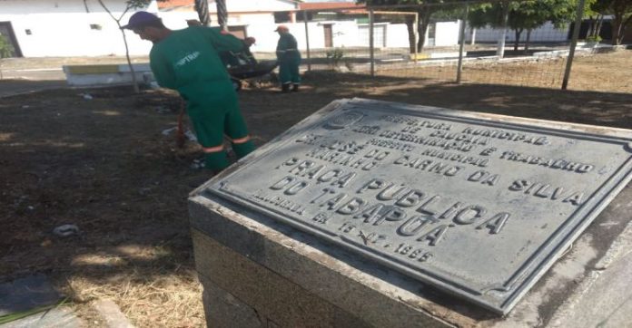 A Prefeitura de Caucaia, através da Secretaria Municipal de Patrimônio, Serviços Públicos e Transporte (SPSPTrans), está realizando ações de capinação, limpeza e pintura do meio-fio nas praças do Tabapuá. A atividade faz parte do sistema de manutenção realizada diariamente pela equipe de limpeza da pasta.