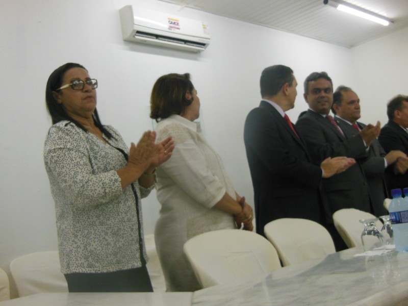 A prefeita Fátima Gomes ladeada com a Secretária de Políticas Sobre Drogas, deputada Mirian Sobreira, que representou o governador Camilo Santana, parabenizou o presidente reeleito da subseção da OAB/Iguatu, Marco Antonio, “Foi uma honra participar da posse desta entidade tão importante, especialmente ao eleger o primeiDSCN7145ro conselho. Quero aproveitar também em nome dos quixeloenses parabenizar e desejar muito sucesso a toda à diretoria e ao presidente da OAB, Marco Antonio” disse a prefeita.