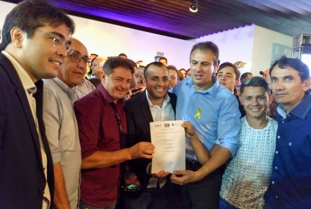 Em Fortaleza, na manhã desta segunda-feira,( 7/05), o prefeito Zé Helder (MDB), com o presidente da Câmara de Vereadores, Alan Salviano (MDB), com o deputado estadual Dr. Sarto (PDT), com o vereador Antônio Alcântara (PT), com os assessores André Tanaka e Alécio Dias e com a presença do ex-vereador Chico Clementino participaram da solenidade liberação de recursos financeiros do programa do Governo do Estado, de Ponta a Ponta.