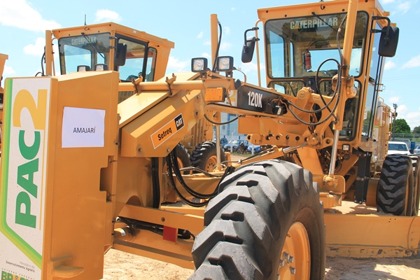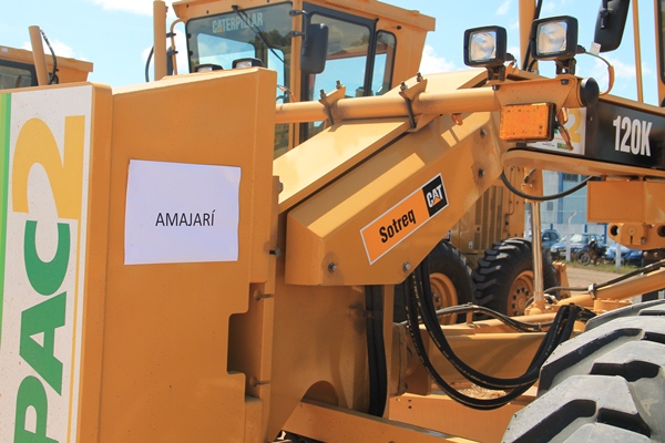 Na manhã desta sexta-feira (25/10), o prefeito de Amajari, Moacir Mota (PR), acompanhado da primeira-dama do município, Gleyce Moraes, de vereadores e de sua equipe técnica, deu a acelerada inicial para mais uma etapa da melhoria das estradas do município, com a chegada da Moto niveladora. Esse equipamento foi doado pelo Governo Federal através do Programa de Aceleração do Crescimento – PAC 2, e entregue através do Ministério do Desenvolvimento Agrário (MDA).