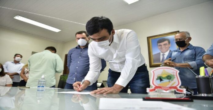 O prefeito Naumi Amorim autorizou, nesta quarta-feira (5/8), o início do processo licitatório de mais um pacote de obras do Avança Caucaia, o maior programa de infraestrutura integrada da história do município. Serão contempladas no pacote a requalificação das praças da Estrada Velha do Icaraí, do Jardim Icaraí, da Tabuba e da Tabubinha, além dos calçadões da Jurema e do Nova Metrópole e do canteiro central da BR 222. A assinatura foi realizada no Gabinete do Prefeito, no Itambé, e contou com a presença de vereadores.