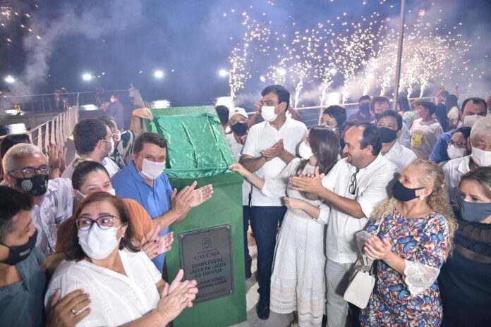 O prefeito Naumi Amorim, acompanhado da primeira-dama e deputada estadual Érika Amorim, entregou na noite desta quarta-feira (30/12) o Complexo de Lazer da Lagoa do Tabapuá “Neurami Gomes de Amorim Junior”. O espaço recebeu pista de cooper e de skate, estrutura para restaurantes, playground, píer flutuante, areninha com arquibancadas, quadra de areia, academia ao ar livre, além de nova iluminação, paisagismo, área lúdica e o novo calçadão.